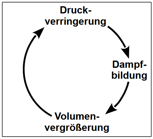 Erst eine Verringerung dieses Druckes auf Werte unterhalb des aktuellen Siededrucks startet den Vorgang der Entspannungsverdampfung.