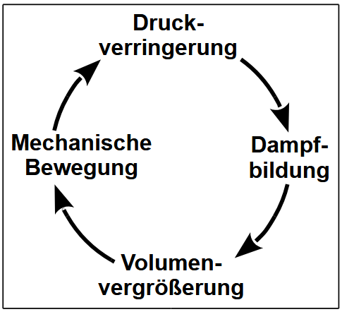 – kontinuierlich das Volumen des Arbeitsraumes vergrößern für den neu entstehenden Arbeitsmitteldampf beziehungsweise das Ausdehnen des bereits vorhandenen Arbeitsmitteldampfes